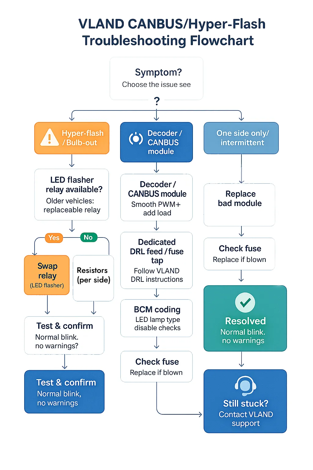 VLAND CANBUS & Hyper-Flash Fixes (2025): Stop Bulb-Out Warnings, Fast Blinking & DRL Flicker