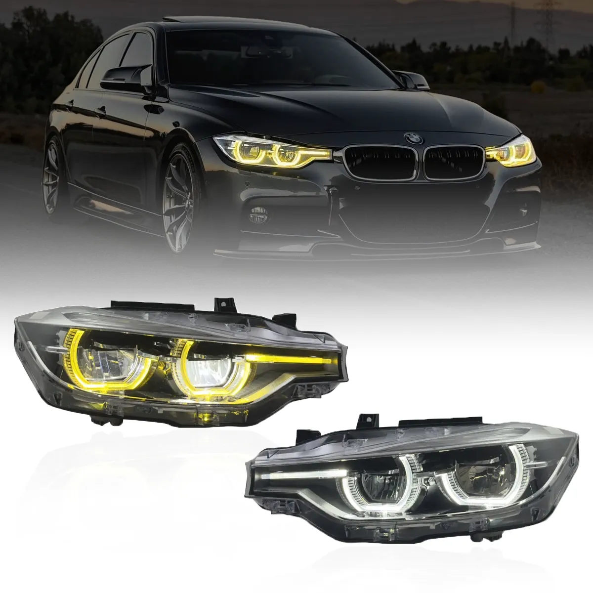 BMW Serie 3 (F30/F31) faros LED — DRL amarillo — estilo GTS/CSL — 2012–2018 — retrofit halógeno & xenón (no para LED OEM)