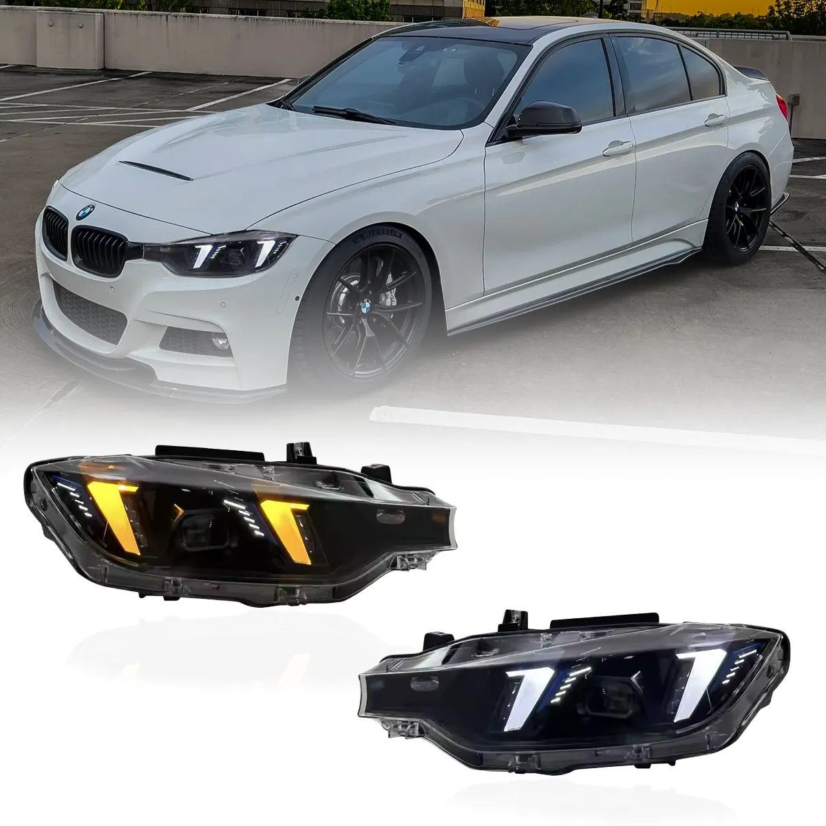BMW 3 Series (F30/F31) LED “Snake Eye” Headlights with Yellow/White DRL — 2012–2018